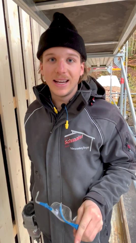 Zimmerer und Zimmerinnen arbeiten mit vielen unterschiedlichen Werkzeugen und Maschinen. Daher wird die fachgerechte Handhabung und der sichere Umgang damit während der gesamten Ausbildung ständig geübt. Arbeitssicherheit wird bei uns GROSS geschrieben. Das gilt selbstverständlich auch für das Arbeiten auf Baustellen.